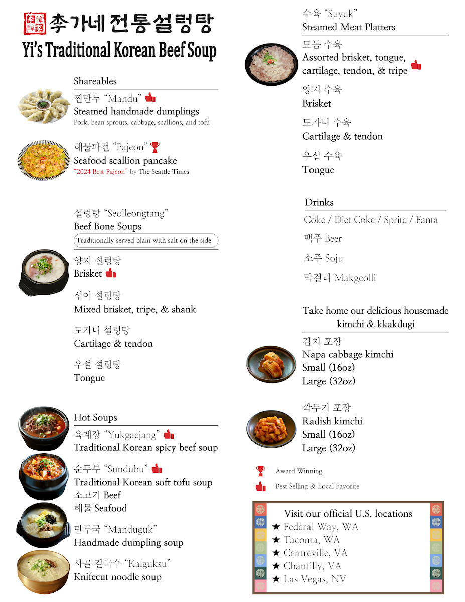Welcome to Yi's Traditional Korean Beef Soup, a culinary gem celebrated for its authentic take on classic Korean beef soups. Nestled in a charming locale, this establishment invites diners to indulge in rich flavors and hearty portions, crafted with a love for tradition and a keen eye for quality.